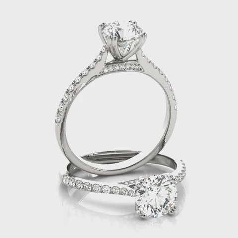 Round Brilliant Double Prong Pave Diamond Engagement Ring 1.07Ct