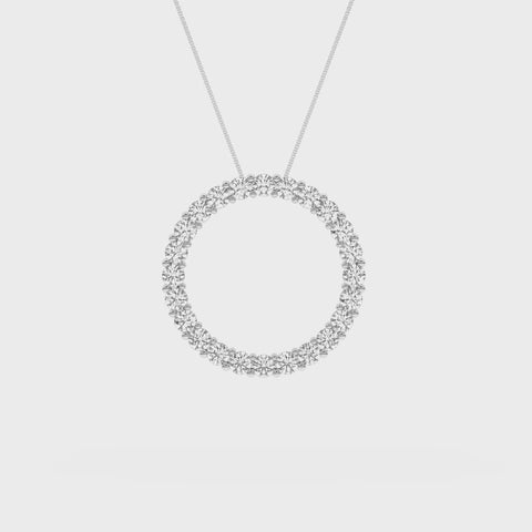 This classic round created diamond circle pendant is crafted in 14KT gold and set with E-F color, VS clarity diamonds. The clean silhouette shines with quiet brilliance, suspended from a refined 18" box chain and secured with a spring ring clasp. Understated & elevated.