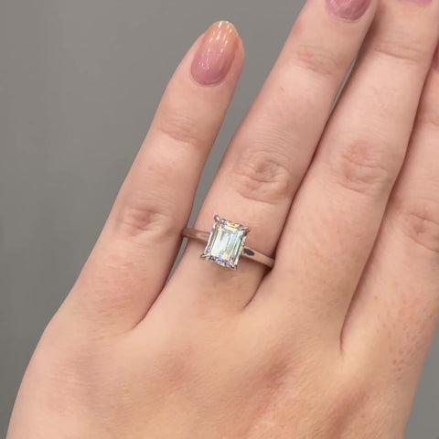 Say hello to our Classic Cathedral Emerald Created Diamond Solitaire Ring: