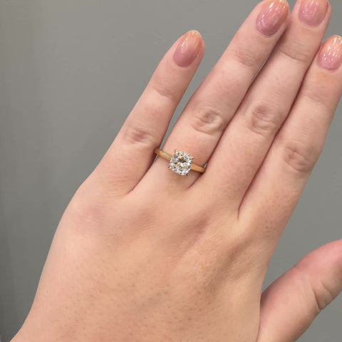 Simple, stunning, and unapologetically timeless. Crafted in 14KT gold and crowned with a brilliant 2 ct square cushion diamond, this beauty was made to turn heads (and maybe cause a few happy tears).