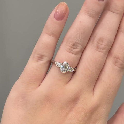 Oval & Pear 3 Stone Diamond Engagement Ring