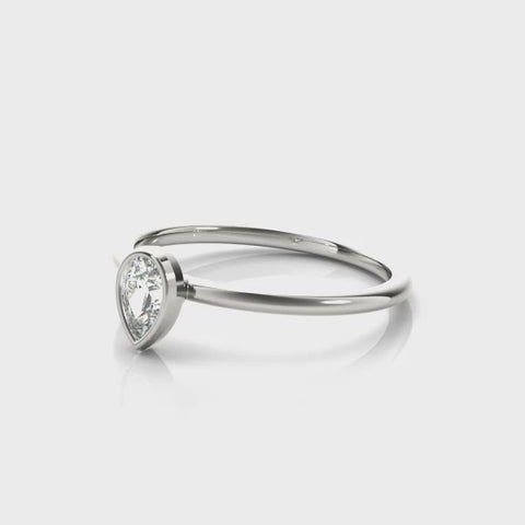 Effortless, minimal, and endlessly versatile. This Bezel Solitaire Diamond Ring features a 1/4 carat pear created diamond encased in a sleek gold bezel setting. Its low-profile design offers a modern twist on the classic solitaire. Perfect for stacking or wearing solo. With clean lines and a luminous finish, this dainty piece captures the essence of understated luxury.